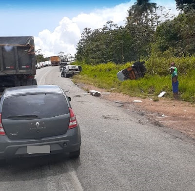 De acordo com a Polícia Rodoviária Federal, a pista está fechada e um engarrafamento se forma no local.