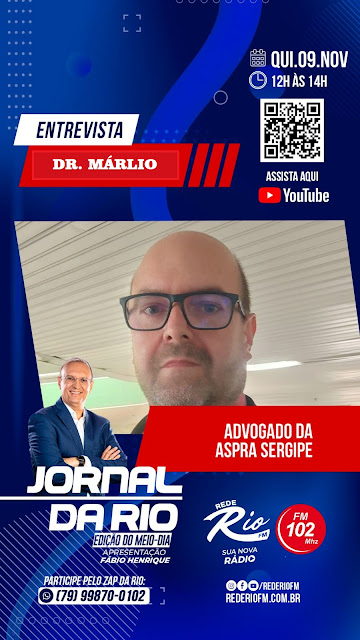 Logo mais às 12 horas desta quinta-feira, dia 089, o programa Jornal da Rio, edição do meio-dia, apresentado pelo jornalista Fábio Henrique, estará entrevistando o assessor jurídico da ASPRA/SE (Associação de Praças Policiais e Bombeiros Miliares de Sergipe), o advogado Márlio Damasceno, na Rio FM 102,3, na defesa dos policiais militares.